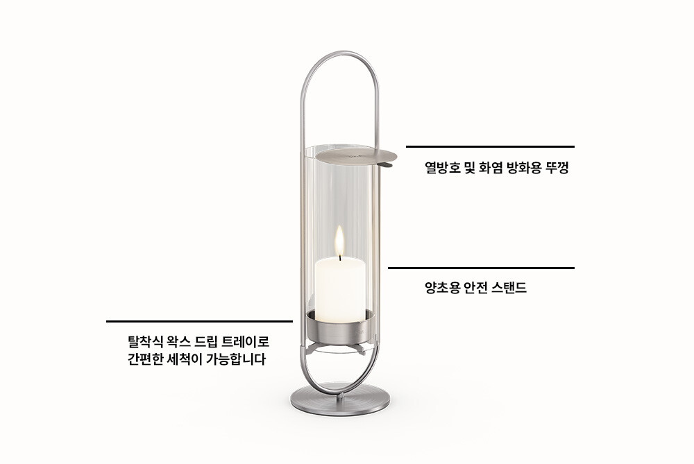 OVAL CANDLE은 여러분의 삶을 감동적으로 만들어줍니다. 유리 실린더는 불꽃을 보호하고 가시성을 극대화합니다.