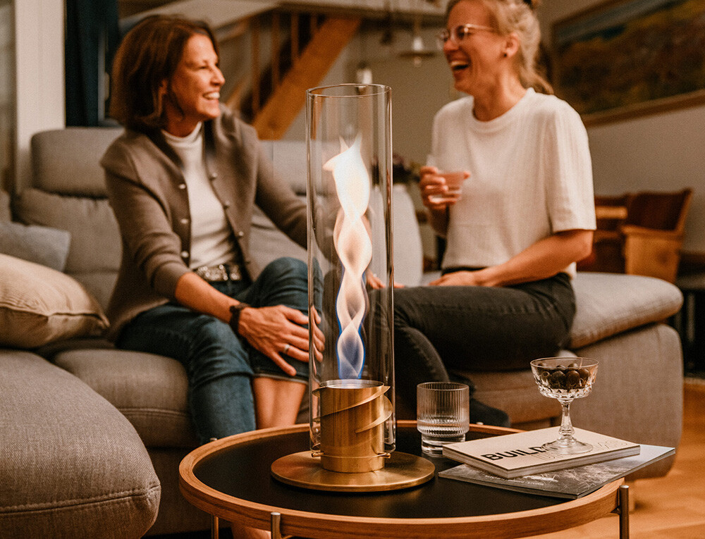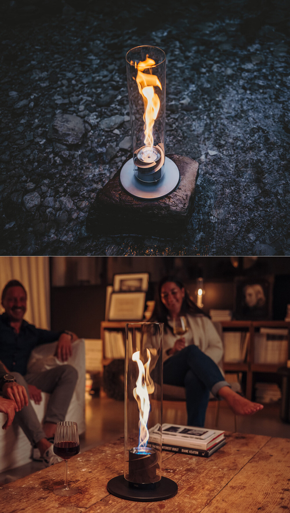 에너지가 넘치지만 부드럽고 흐르는 불꽃이 공중으로 솟아오릅니다. 빛나는 나선형 구조가 눈길을 끌며 불꽃은 실내와 실외에서 여러분이 가장 좋아하는 장소의 조각품이 됩니다. 마법 같은 분위기를 즐기세요