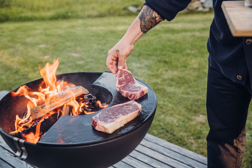 화이어 볼은 아주 심플하면서도 기능적입니다! 검은색 강철 반구가 삼각대 베이스에 떠 있는 것처럼 보입니다. 2개의 플란차로 캐주얼한 느낌의 스탠딩 파티와 바비큐를 즐겨보세요. 쉽게 보지 못한 고급스러운 디자인은 더욱 식욕을 돋우워줍니다. 제대로 불을 피우면 볼은 약 10분 만에 고기, 생선 또는 채소 등을 먹을 준비가 됩니다!