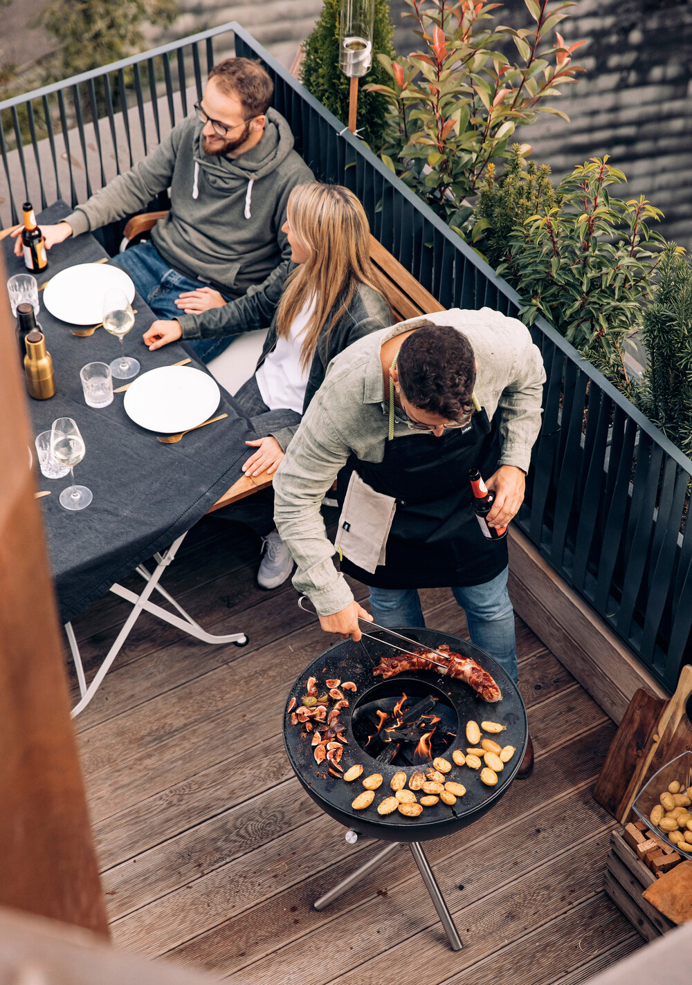 모닥불이 있는 라운지 분위기는 이보다 더 강렬하고 아름다울 수 없습니다. 와이어 베이스가 있는 볼은 앉아 있는 동안 아늑한 모임을 위한 이상적입니다. 그릴이나 플란차에 올려놓고 바비큐 파티를 시작해보세요!