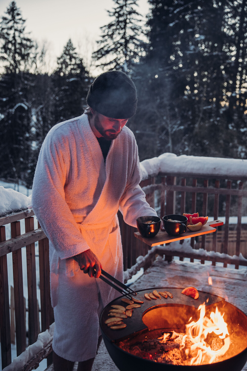 식사를 마친 뒤에 차를 마시면서 모닥불에 모여 편안하고 따뜻한 저녁 시간을 보낼 수 있는 완벽한 프리미엄 화로대입니다. 필요에 따라 볼을 기울여서 조정하면 바람으로부터 불꽃을 보호하고 열의 방향을 맞출 수 있습니다.