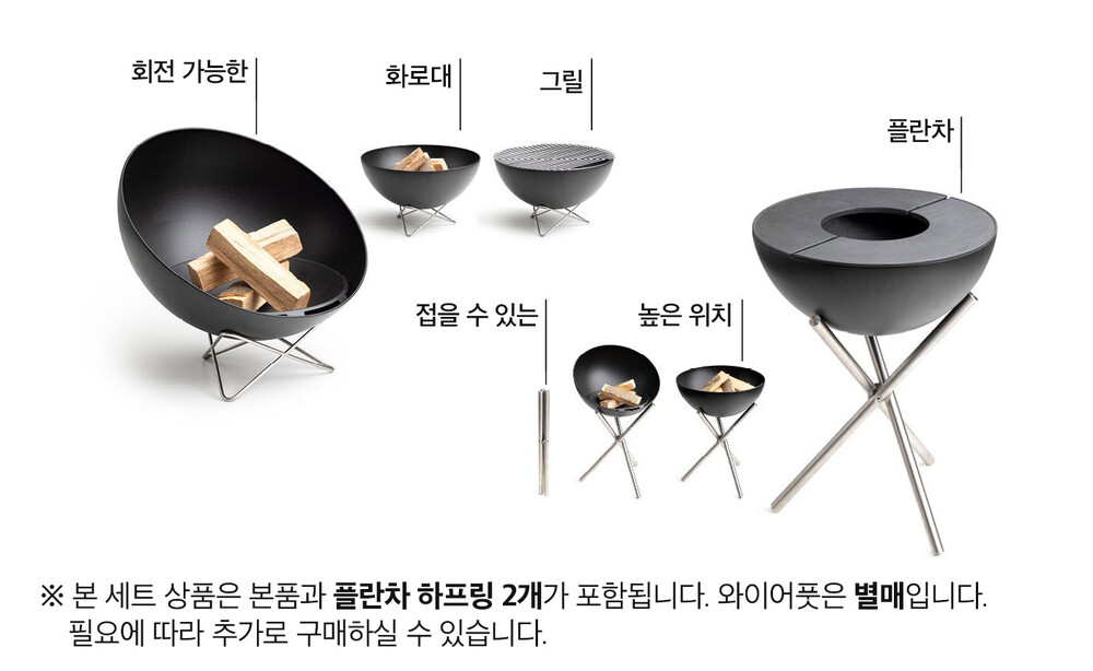 불멍을 할 수 있는 화로 또는 다목적 그릴로 사용할 수 있는 볼(Bowl) ! 선선한 저녁에 분위기를 따뜻하고 훈훈하게 달구고 싶으신가요? 반구를 옆으로 기울이기만 하면 포근한 온기가 한 방향으로 전달됩니다! 소그룹 또는 대규모 그룹으로 그릴을 원하세요? 그러면 볼을 수평으로 놓고 그릴이나 플랑차 또는 둘 다에 놓고 다양한 바베큐 특선 요리로 손님들과 즐거운 시간을 보내실 수 있습니다.