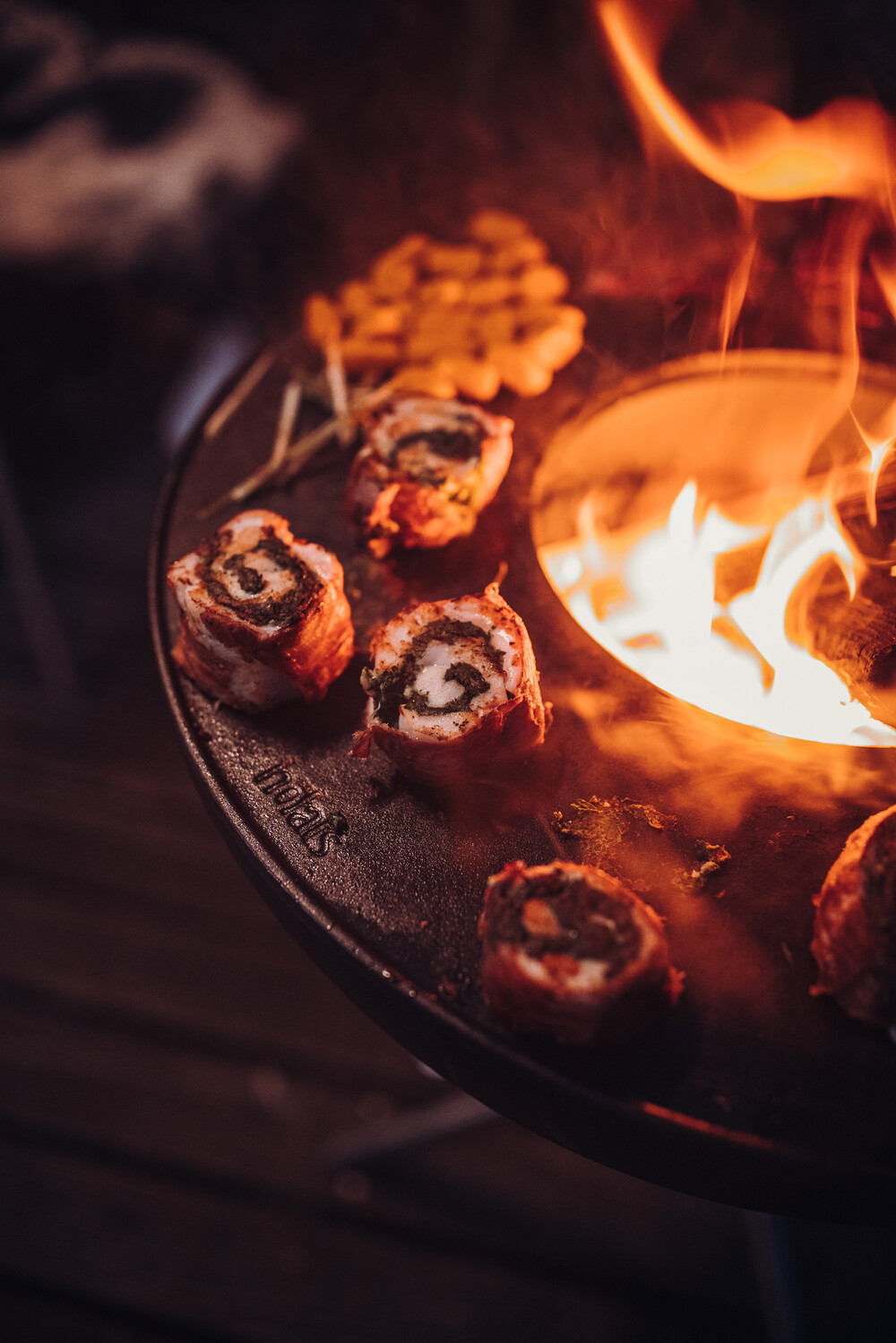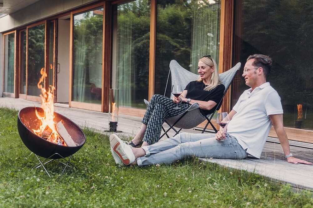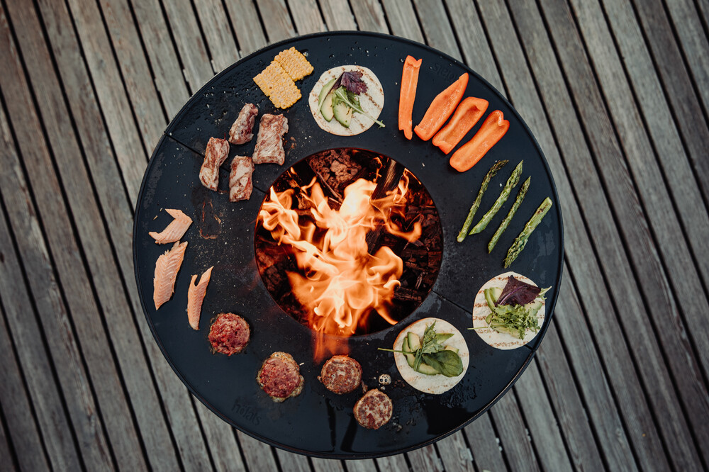 모닥불이 있는 라운지 분위기는 이보다 더 강렬하고 아름다울 수 없습니다. 와이어 베이스가 있는 볼은 앉아 있는 동안 아늑한 모임을 위한 이상적입니다. 쉽게 볼 수 없는 원형 플란차에 각종 음식을 올려놓고 바비큐 파티를 시작해보세요!