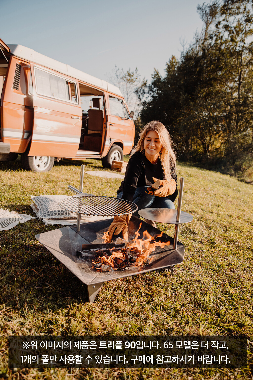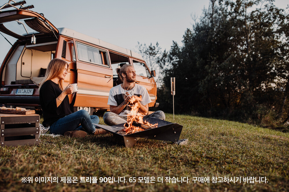 트리플(TRIPLE)의 육각형 디자인은 일반적인 화로대와 다른 모양으로 매력적입니다. 세 개의 동일한 형태의 파트를 빠르고 쉽게 결합하여 육각형을 형성할 수 있습니다. 트리플은 세 가지 크기로 제공됩니다. (국내에서는 65, 90 사이즈를 제공합니다.) 사이즈에 알맞는 올바른 액세서리를 선택하시고 바비큐를 즐겨보세요. 파티가 끝나면 트리플을 분해해서 3개의 파트를 쌓아서 옮길 수 있습니다. 정말 공간을 절약하면서 넓은 화로대의 모닥불을 즐길 수 있습니다.