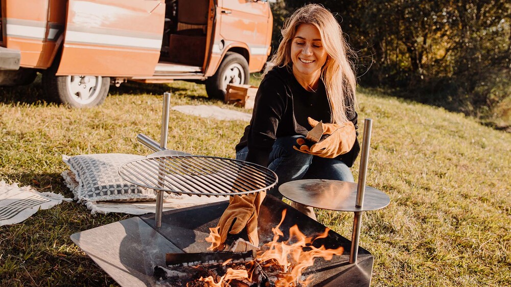 불멍도 좋지만 캠프 파이어에서 바베큐를 빠뜨려선 안되겠죠? 육즙이 풍부한 스테이크, 부드러운 생선, 맛있는 채소를 위해 높이 조절이 가능하고 회전하는 그릴을 사용하세요! 플레이트를 사용하여 구운 음식을 따뜻하게 유지할 수도 있습니다. 주전자를 올려 놓으면 차나 커피도 즐기실 수 있습니다.